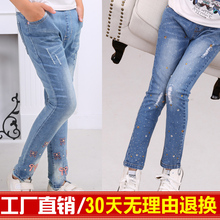 2017春秋新款儿童牛仔裤女中大童长裤童装铅笔裤小脚裤韩版休闲裤