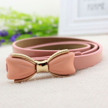 女士细腰带糖果色漆皮腰带女韩版百搭时尚对扣蝴蝶结装饰细皮带潮