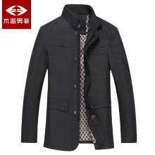 木笛男装2017春秋装男士商务休闲棉衣夹克桑蚕丝立领修身茄克外套