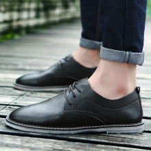 新款系带男鞋夏季布洛克休闲皮鞋商务男士潮鞋纯色百搭英伦风鞋子