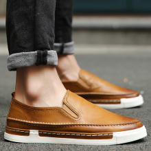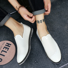 夏季男鞋新款休闲皮鞋透气白搭平底板鞋懒人鞋一脚蹬韩版英伦风