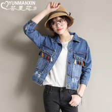 芸蔓芯2017春装短款宽松显瘦流苏牛仔外套女时尚挂件百搭短外套