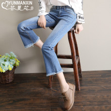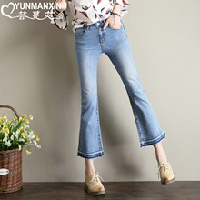 芸蔓芯2017春装新款弹力牛仔女九分微喇裤韩版毛边显瘦小喇叭裤潮