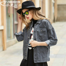 2017春季蝙蝠袖牛仔外套女上衣BF烟灰色牛仔衣女宽松学生原宿外套