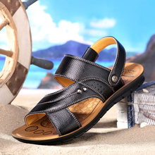 夏季新款男士凉鞋真皮沙滩鞋男两用中老年人防滑牛皮休闲凉拖鞋男