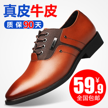 商务正装休闲皮鞋男真皮系带尖头百搭英伦风青年男士秋季潮流鞋子