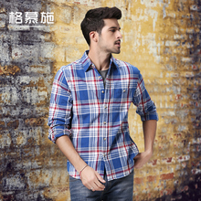 格慕施秋冬全棉法兰绒长袖衬衫大码男士休闲英伦美式格子衬衣男