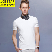 夏季男V领短袖T恤潮流韩版加大码修身纯棉上衣服全棉半袖体恤男装