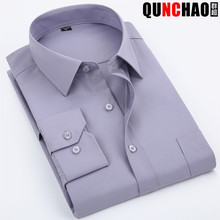 群超男装商务免烫中老年爸爸装男士大码长袖衬衫加肥加大胖子衣服