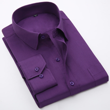 纯棉紫色长袖衬衫大码衬衣送父亲爸爸装中老年人男士长袖全棉衬衫