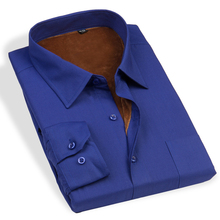 男装宝蓝色长袖保暖衬衫深蓝色保暖衬衣中老年人加大码加肥加绒衣
