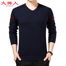大牌人2016春装中年男士长袖t恤V领针织衫时尚韩版修身体恤男长袖