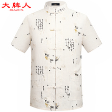 大牌人夏装中老年唐装短袖男士复古风民族服饰爸爸装加肥加大衬衫