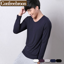 秋季莫代尔男士长袖t恤 纯色圆领男T恤 有大码男款紧身体恤打底衫