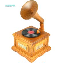 精品仿真木质发条留声机 音乐盒八音盒 生日爱情礼物