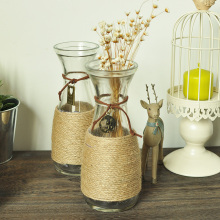 现代简约创意复古麻绳玻璃花瓶田园家居客厅台面花瓶摆件客厅花瓶