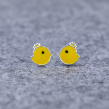 正品925纯银超萌小黄鸡耳钉女日韩滴釉卡通鸡仔简约气质耳饰礼物