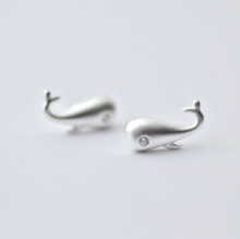 正品s925纯银耳钉女小清新磨砂可爱镶钻鲸鱼个性百搭女银耳饰品