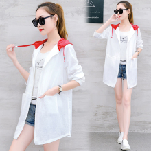 2017夏装中长款防晒衣服女韩版时尚长袖连帽薄款遮阳皮肤风衣外套