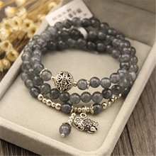 天然灰色玉髓貔貅辟邪转运吊坠绕三圈时尚串珠子多层手串手链女