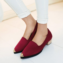 2017春季新款英伦风金属尖头粗跟单鞋女中跟工作鞋大码女鞋40-43