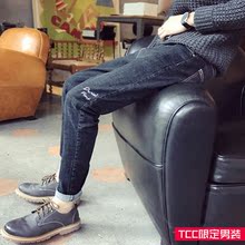 TCC 秋冬港风新款韩简约男士休闲百搭水洗做旧牛仔裤长裤小脚裤潮