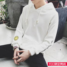 TCC 秋季新款日系简约纯色小清新笑脸英文绣花连帽卫衣男 外套潮