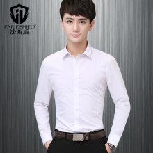 男士长袖衬衫白色商务职业正装青少年纯色免烫衬衣工装男韩版修身