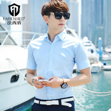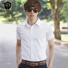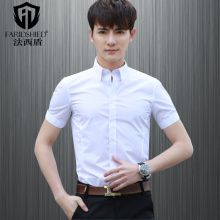 夏季男士短袖衬衫韩版修身商务职业正装白色衬衣工作服青少年寸衫