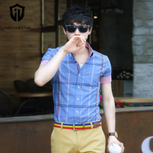 法西盾夏季商务免烫男士短袖衬衫格子修身韩版休闲男纯棉半袖衬衣