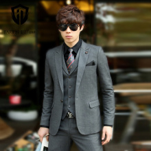 韩版修身男士西服套装职业正装新郎结婚礼服三件套伴郎西装四季