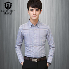 秋季男士格子衬衫长袖韩版修身型衬衣商务正装休闲免烫青年寸衫男
