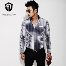 秋季韩版修身型竖条纹青年花衬衣男士商务免烫长袖衬衫英伦休闲潮