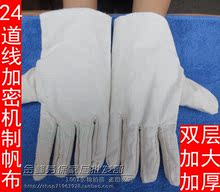 加大全双层全帆布手套耐磨工人24道压线劳保焊工加厚防护手套电焊