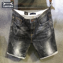 夏季破洞牛仔短裤男士五分牛仔裤男中裤修身弹力宽松5分裤潮薄款