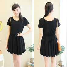 17夏春薄款莫代尔休闲裙短袖背心裙显瘦中裙孕妇裙大码女装连衣裙