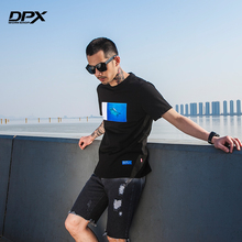 DPX街头潮牌夏季新款字母印花短袖T恤男黑色圆领纯棉贴布街头半袖
