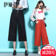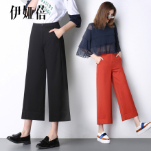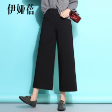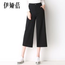 伊娅蓓2017春夏新款阔腿裤女高腰九分裤阔脚裤女宽松大码西裤女潮