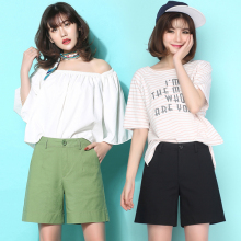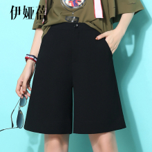 伊娅蓓2017短裤女夏新款高腰阔腿裤女五分裤宽松休闲裤女四分裤子