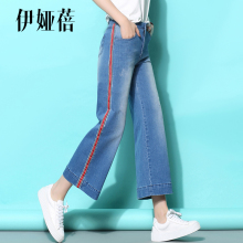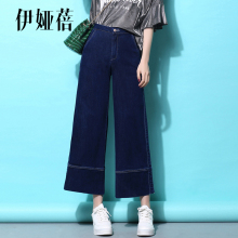 伊娅蓓2017春夏新款牛仔阔腿裤女九分裤高腰韩版学生阔脚裤直筒裤