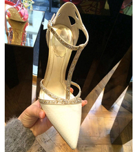 17早春新款美鞋尖头高跟鞋蝴蝶结水钻系带细跟性感单鞋一字带女鞋