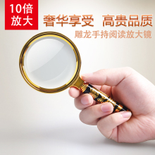超大镜面龙柄老人阅读维修鉴定塑料镀金高清手持放大镜10倍便携式