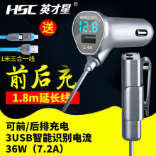 英才星车载充电器前后充手机汽车充点烟器插头汽车多功能车充