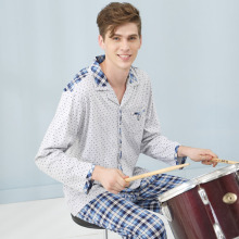 SOLLASI/索拉茜全棉睡衣男夏季春秋款长袖长裤纯棉家居服睡衣套装