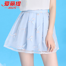 爱丽缇 短裙2017春装欧根纱绣花百褶裙A字裙显瘦雪纺半身裙女