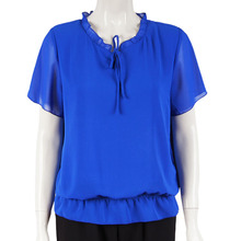 【天天特价】中老年短袖T恤妈妈装韩版雪纺衫荷叶领雪纺上衣衬衫