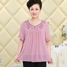 【天天特价】中老年妈妈装雪纺衫短袖绣花T恤大码50-60岁妇女衬衫