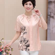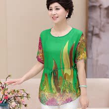 中老年女装春夏装短袖T恤40-50岁妈妈装宽松雪纺衬衫短款薄款上衣