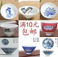 青花瓷斗笠杯仿手绘功夫茶具陶瓷品茗杯茶盏普洱红茶杯碗茶具配件