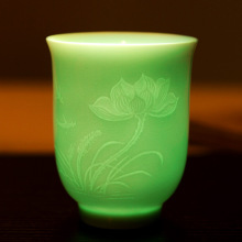 景德镇影雕功夫茶杯陶瓷 个人杯普洱薄胎茶器品茗杯青瓷茶具